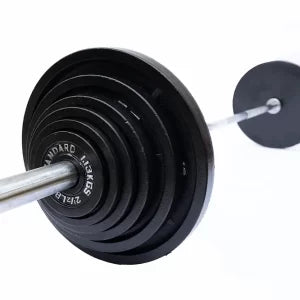 Metal Plates (2x45, 2x35, 2x25, 2x10, 2x5, 2x2.5 LB w/7 ft olympic barbell/clips)